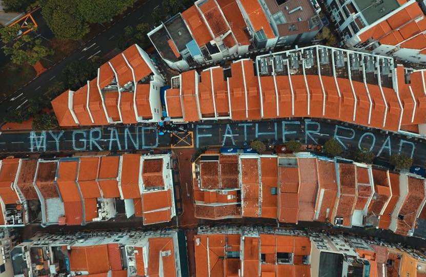 Once charged for mischief in 2013 for her viral antics involving spray-painting the popular colloquial phrase “My Grandfather Road” on several roads, the ‘Sticker Lady’ took it to the next level by using chalk to write a 170 metre-long version of the phrase across Circular Road. It’s so mind-blowingly huge that you can only make it out properly in a drone pic.