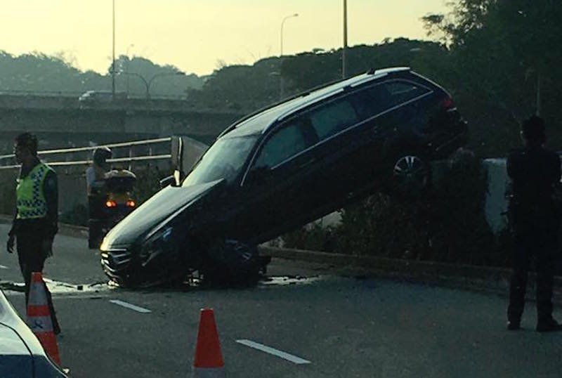 Another early morning accident on the roads today (after a harrowing one on the SLE yesterday) left one person injured after a car mounted the centre divider along Braddell Road.