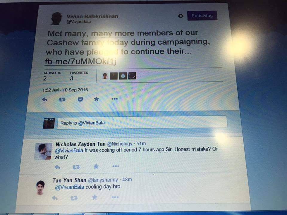 Such is the reason why people have been outraged that Peoples’ Action Party candidate for Holland-Bukit Timah GRC Vivian Balakrishnan allegedly went out and about today, according to States Times Review. Screengrabs of his tweet stating that he went out visiting families have been spreading around online — and the original post has since been deleted. An honest mistake probably, but one with very severe consequences.