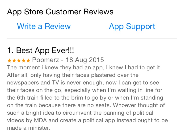 Though still in beta, PAP4SG app is now available on the iOS app store (sorry/hooray Android users; delete where appropriate) offering users the chance to be continuously updated about party news, events, policies and information if you, for some reason, want it delivered to your mobile. There’s also a camera feature where you can slap PAP stickers on your photos. Here’s one that we did just now.