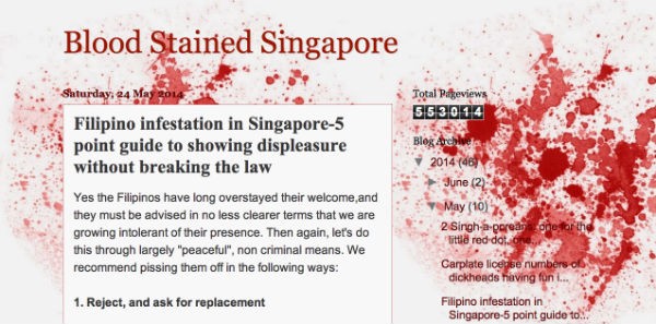 A statement on their website reveals the Philippine embassy in Singapore has been in contact with the government about making the person behind Blood Stained Singapore accountable for a recent racist blog post.