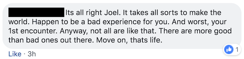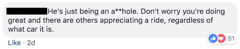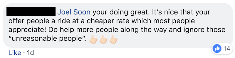 Fellow GrabHitch drivers assured Soon that the passenger is very much an asshole, and that the student did nothing wrong.