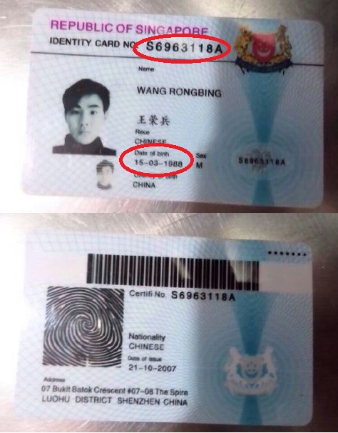 Apparently, someone has been going around crafting bogus Singapore identity cards for Chinese citizens.