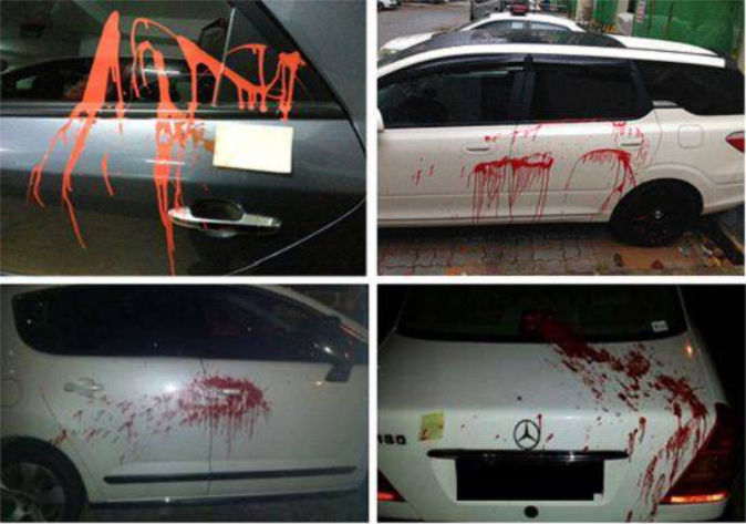 Between July 21 and 30, the authorities have received reports of vehicles parked in the carparks of these two housing estates being splashed with red paint. Debtors’ notes believed to be related to the act were also discovered.