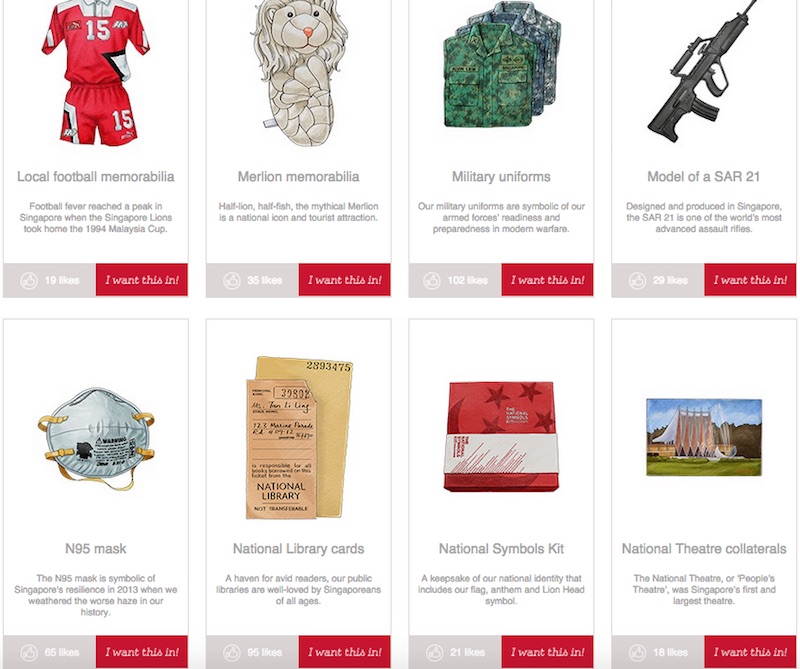 A time capsule is currently in the works that’ll be opened by the citizens of Neo-Singapore come 2065, a time when we’ll probably have hovercars already. All are invited to choose and vote for what item should go inside the capsule, including items such as military uniforms, local football memoribilia, ERP in-vehicle units and even NEWater. Though you can’t capture the haze and store it inside the capsule, you can vote to include the N95 mask instead.