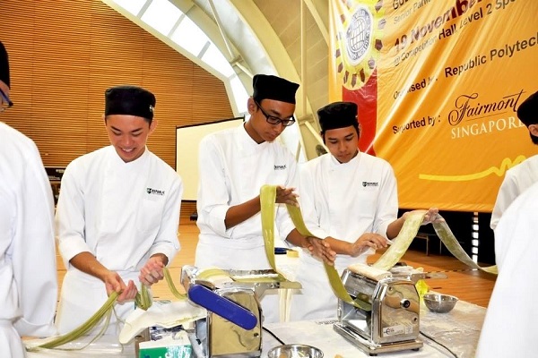 A record-breaking green tea flavoured pasta made by students of the Republic Polytechnic’s (RP) School of Hospitality has been donated to 250 elderly beneficiaries.