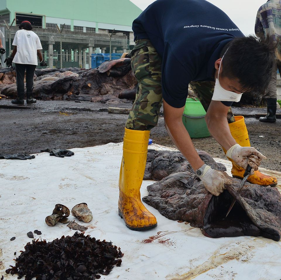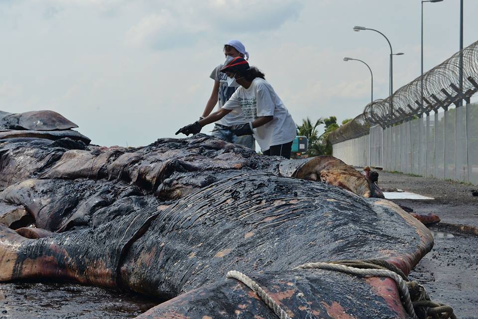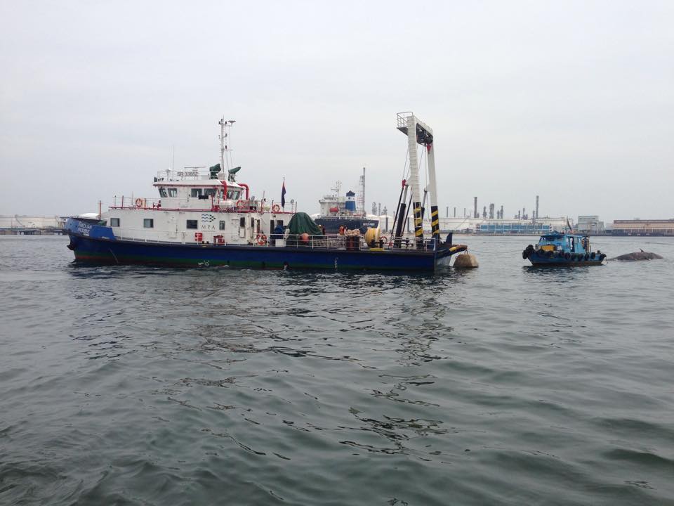 Measuring between 10 and 15 metres in length, the discovery of the sperm whale marks the first time such a species was found here. A member of the public by the name of Jailani alerted the authorities about the massive carcass when he spotted it floating in the waters near an offshore tank terminal. Various government bodies including the Maritime Port Authority and the National Environment Agency helped the museum’s staff salvage the carcass, and was brought to land last Friday evening.