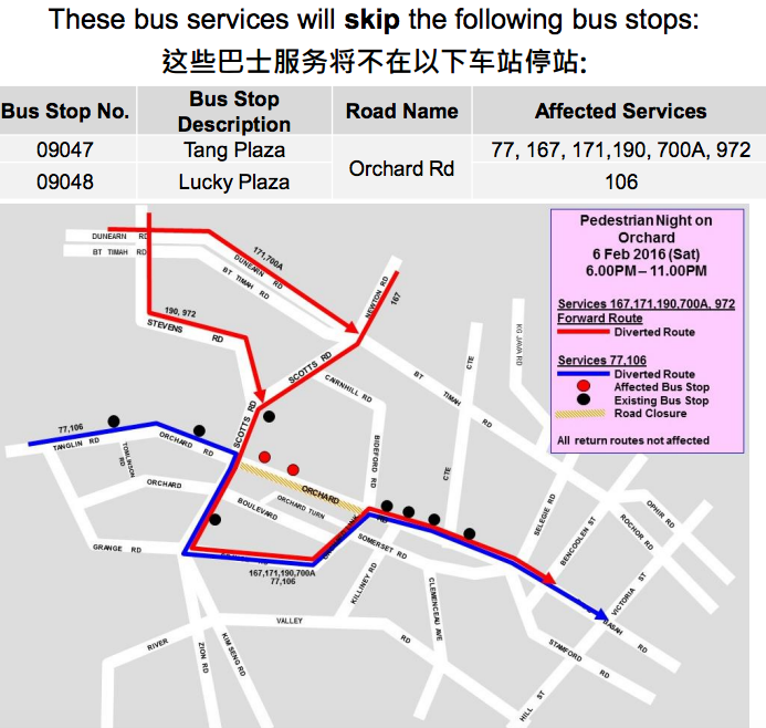 Bus services will be diverted as well during the period from 6pm to 11pm.