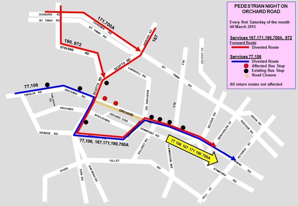 Parts of town will be closed to vehicular traffic from 6pm to 11pm — namely Orchard Road (between Scotts Road and Bideford Road) and the carriageway of Mount Elizabeth in the direction of Orchard Road (between Nutmeg Road and Orchard Road).