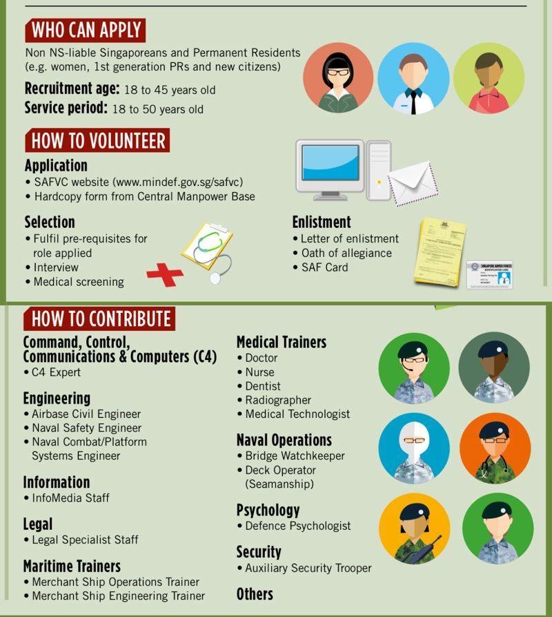 Volunteers will have to undergo progressive training that will help ensure their competency and readiness to serve alongside the national servicemen, reservists and regulars in a variety of roles supporting the SAF’s operation.