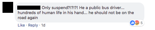 “This is not something we condone and we will be taking disciplinary action against him,” SBS Transit senior vice-president of corporate communications Tammy Tan, told The Straits Times. “We have suspended him from driving duties with immediate effect.”