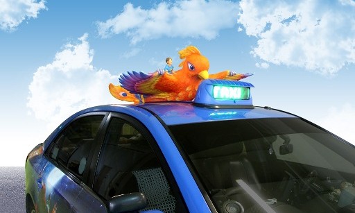 If you happen to see a colorful bird atop the cab you just hailed, don’t worry – it’s just a marketing campaign for Sentosa’s “Wings of Time”.