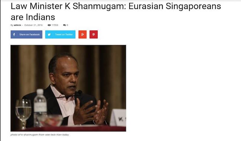 “Quality, independent and credible” news site States Times Review (STR) stirred up some shit recently when it published an article that accused Law Minister K Shanmugam of asserting that Eurasian Singaporeans are categorised as Indians.