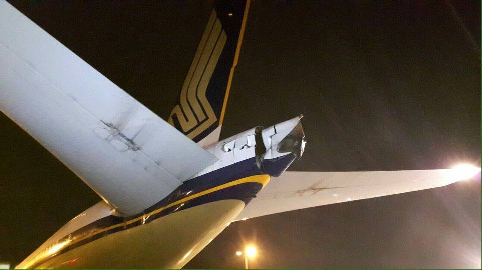 One of Singapore Airlines (SIA)’s Boeing airplanes was damaged on Monday evening it seems — a fact that they’ve kept mum about until today.