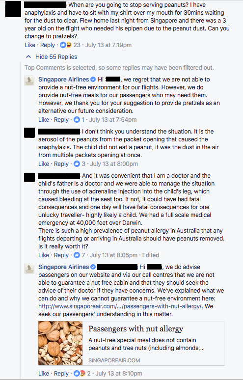 A toddler on board a Singapore Airlines (SIA) flight recently had an allergic reaction to peanuts in mid-air. Three-year-old Marcus, who suffers from anaphylaxis (a serious allergic reaction — in his case, to peanuts), had been given a nut-free meal as requested, but he started vomiting and his eyes began to swell when other passengers on the plane opened their snack packets of peanuts.