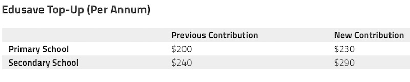 Family with children can look forward to higher Edusave top-ups for their kids. The government announced that it will be increasing annual contributions from $200 to $230 for primary school students, and from $240 to $290 for secondary school students. This will take effect from 2019.