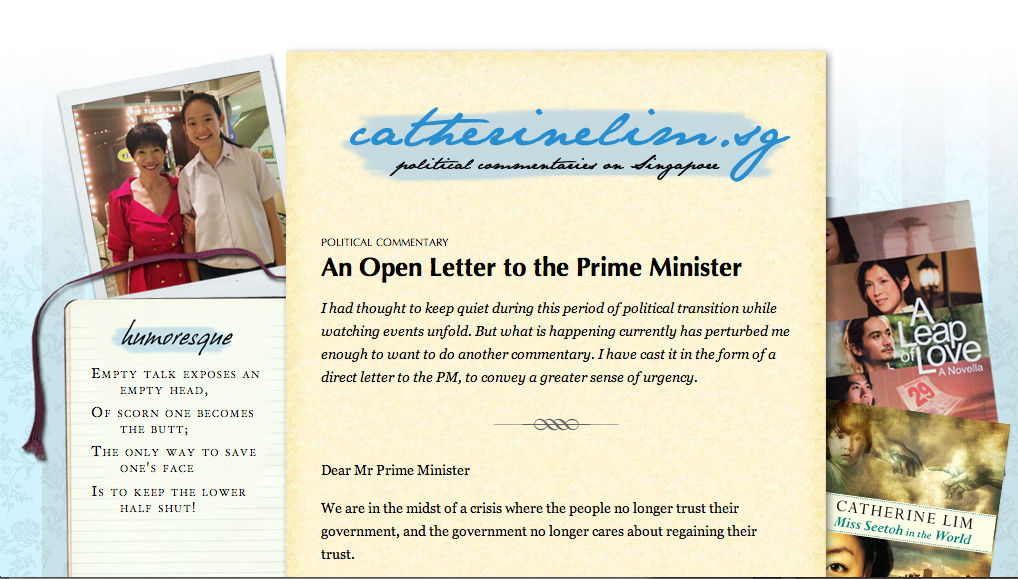 Photo: A screenshot of Catherine Lim’s letter, taken from her blog