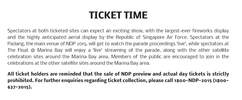 National Day tickets have always been free. You ballot for them, you get them, and you attend either the preview or the mega celebration on Aug 9. That is, until some opportunists decided to make a quick buck and sell tickets online.