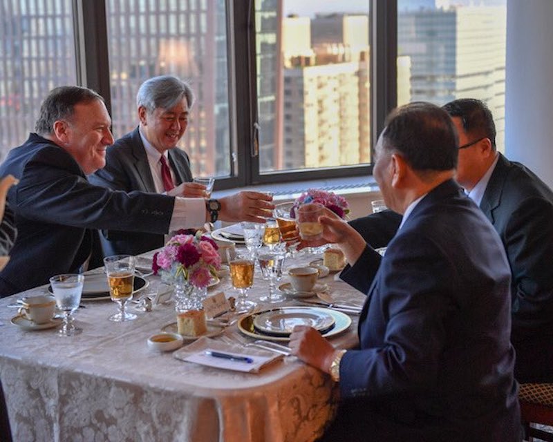 Good working dinner with Kim Yong Chol in New York tonight. Steak, corn, and cheese on the menu. pic.twitter.com/1pu4K3oym7