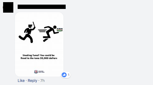 Then there was this pun-tastic post on shop theft, complete with a can of abalone — very on-trend for Chinese New Year.