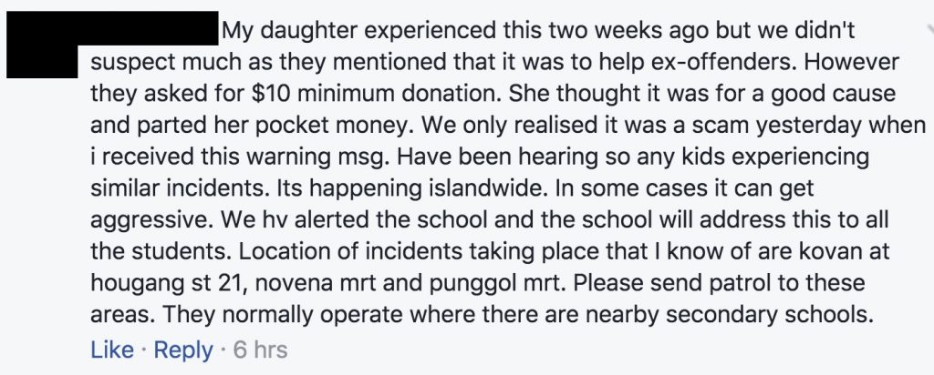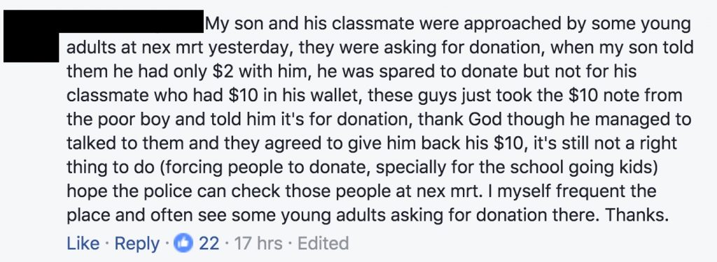 Multiple netizens have also started to voice out that similar tactics have been employed across the island — pretending to solicit donations for a cause seems to be all the rage these days.