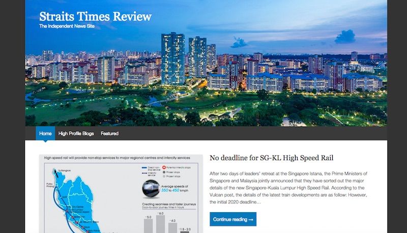 The Straits Times Review was recently registered on Apr 18 by The Real Singapore founder and former editor Alex Tan, who describes the new venture as an independent news site based in Australia.