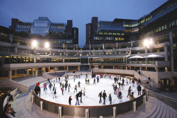 Photo: Broadgate, an estate surrounding the Liverpool Street train station, even has a skating rink popular during the holidays; About.com