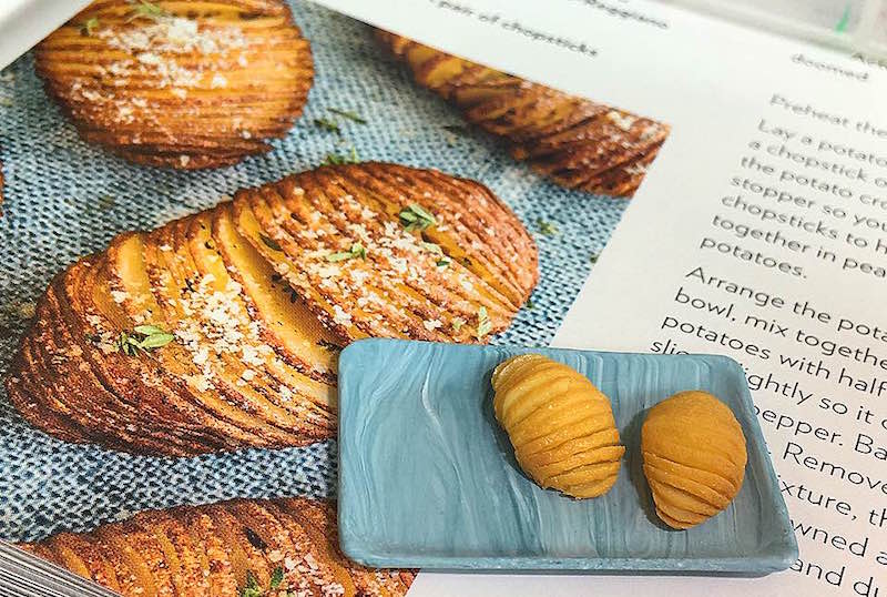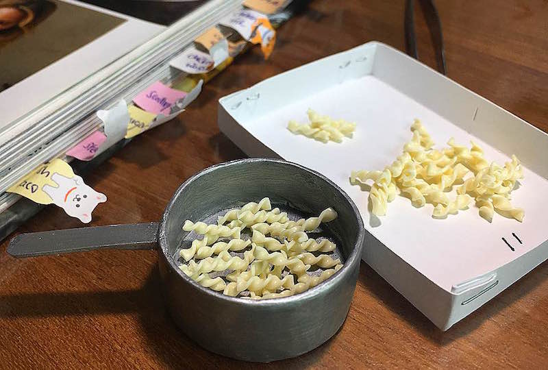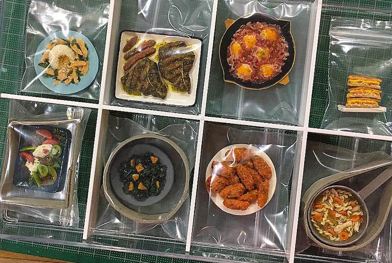 The singer commissioned her to make 15 miniature replicas, and sent over his wife’s cookbook for her to choose the dishes. Some of the ones that Teo chose to craft included chicken satay, kale salad, chicken pot pie soup, scallops with corn, and spicy tomato skillet eggs, which she said was probably the hardest to make with all its ingredients, textures, and colors.