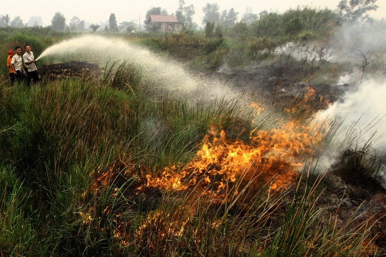 Photo: Men fight a fire in Sumatra, Indonesia on Oct. 7, 2015. AFP / Abdul Qodir