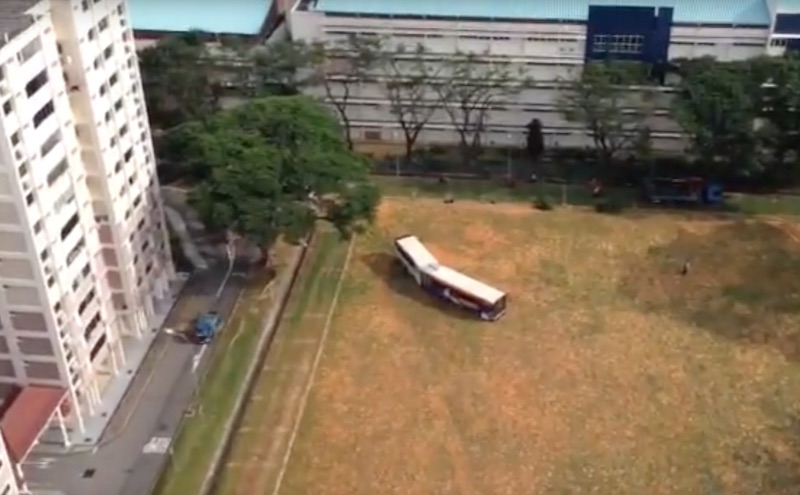 An SMRT bus driver made a wrong turn on the way to Kranji Depot and decided to make a U-turn… on a field.