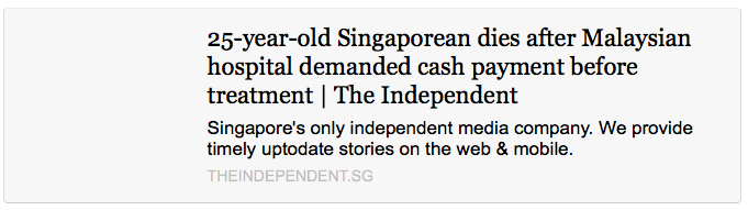 Sensationalism has landed local socio-political site The Independent Singapore in trouble with a whole country — Malaysians were riled up over a report that took their healthcare system to task over the death of a Singaporean student in Johor Baru.