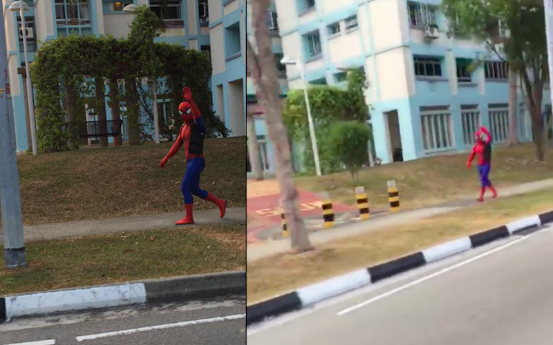 Oh look, it’s our friendly neighbourhood Spider-Man strolling down a street in Pasir Ris. What’s he doing? Will the person unmask himself? Is he on his way to fight a gang of baddies? Or did he just save someone in distress? (Why are we so curious?)