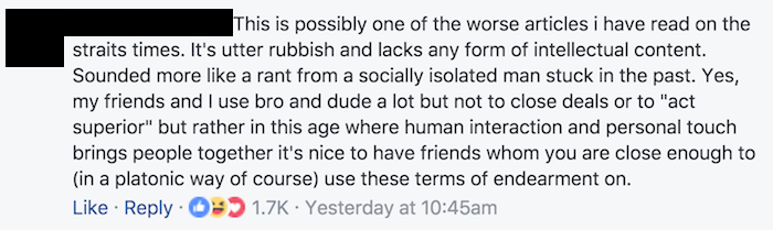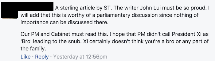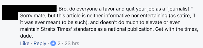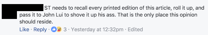 Nonetheless, it succeeded in garnering juicy Sunday clicks and comments, though not for good reasons. Check out all the vociferous hate both Lui and The Straits Times received here, and enjoy these highlights below:
