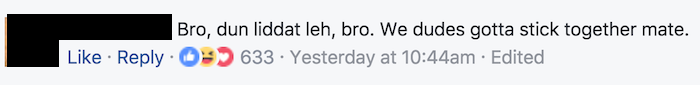 “Men only use ‘bro’ to add a layer of sugar over a hard nugget of compressed fertiliser,” Lui actually wrote. Bro, so articulate and insightful and witty, bro.