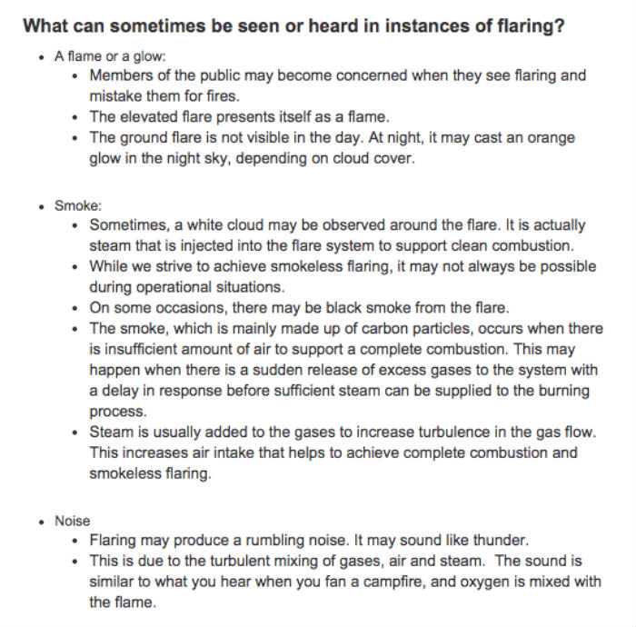According to ExxonMobil, flares are used in refineries and petrochemical facilities to safely burn excess hydrocarbon gases that cannot be recovered or recycled. It’s an alternative to releasing the vapour directly into the atmosphere. “During flaring, excess gases are combined with steam and/or air, and burnt off in the flare system to produce water vapour and carbon dioxide,” the company writes on its website. The process is reportedly similar to the burning of liquefied petroleum gases, which some of us use as fuel for home cooking. Flaring is minimised as much as possible, but it can occur during a start-up and shut-down of facilities for maintenance purposes, and also during unplanned operational interruptions such as power outages. And as Singapore is only a short ferry ride away from its surrounding islands, it’s likely that the physical impact of flaring on say, Pulau Bukom can be observed from various parts.