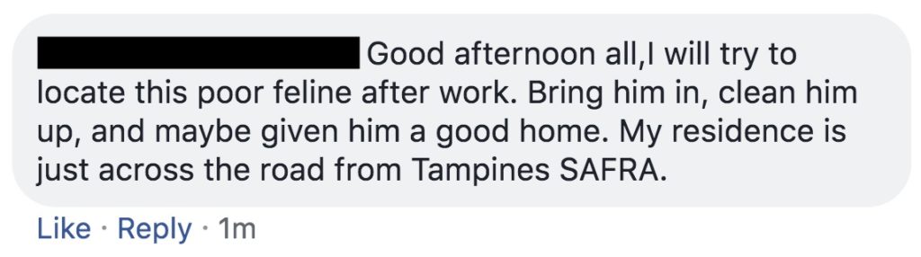 Firdaus was also heartened by all the heartening response to his post by concerned netizens; some of whom will be looking for the cat to take good care of it.