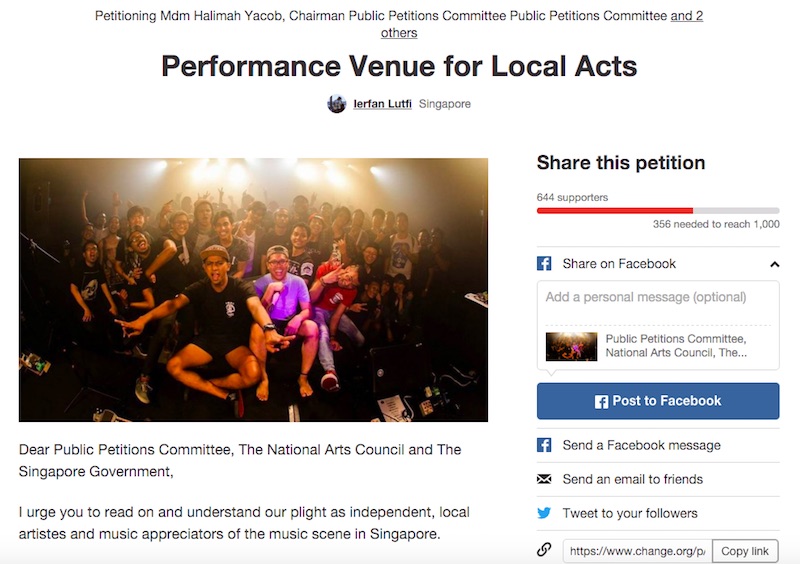 “With The Substation joining the ranks of now-defunct performance venues such as Crawlspace, Blackhole212, and more recently Pink Noize and The Lithe Paralogue, we are left with little to no options for holding gigs,” says Ierfan Lufti, the man behind the petition.