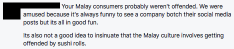 Unsurprisingly, the brand was not spared the throes of perdition on social media — and with Maki-San being really popular among Malay Singaporeans because of its Halal certification, there was no doubt some annoyance at the misplaced pun.