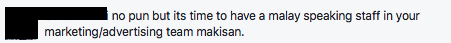 But a lot more were beguiled by the fact that the company was completely oblivious to the true meaning of the word before releasing it. Some netizens commented that this faux pas reflected a lack of diversity in the marketing department and called for a little more tact when launching ad campaigns. Even atas chicken rice purveyors Makcik Chicken (who marketed itself very well) had something to say about this: