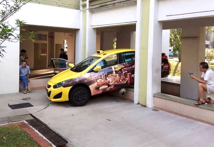 Remember the time when a taxi driver crashed into a void deck in Yishun? Yeah, it happened again, this time in Jurong West.