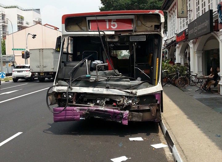 A severe accident occurred last Friday afternoon at the junction of Telok Kurau Road and East Coast Road when an SBS bus collided into the side of a lorry.