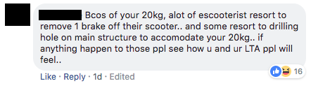 Now the latest news, thanks to a Facebook post by Transport Minister Khaw Boon Wan, is about how someone got a little too excited with their e-scooter modifications and ended up with one that weighed a whopping 92kg.