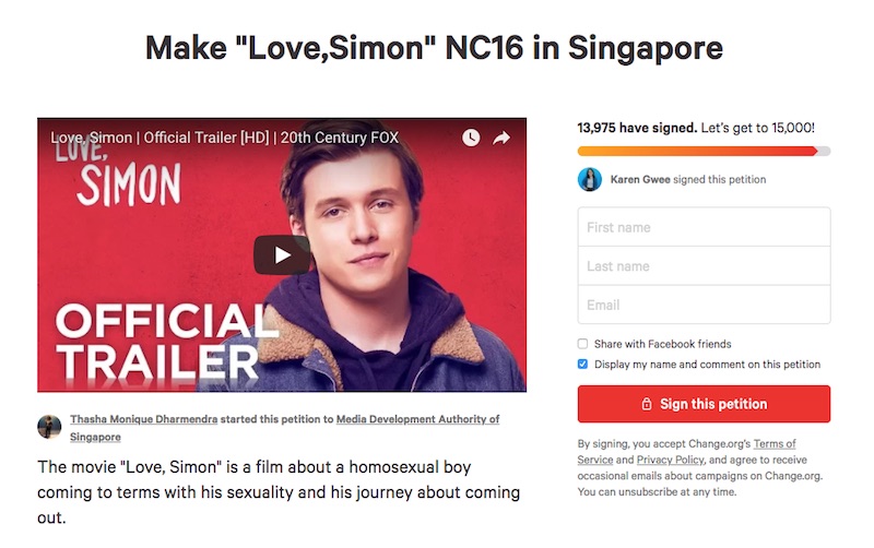 “By making Love, Simon NC16, I am positive that it will have a huge impact on young teenagers struggling to find acceptance from family and friends,” wrote Thasha Monique Dharmendra, who started the petition.