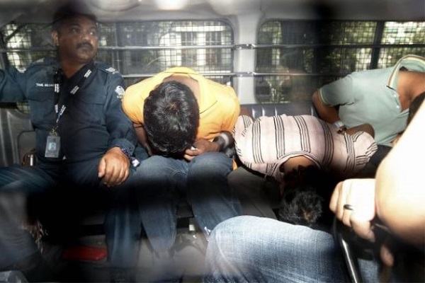 Photo: Arrested foreign workers in a police van; AFP