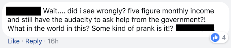 Predictably, what followed was a hurricane of angry comments from netizens who can’t figure out why a family with a monthly five-figure income isn’t able to make ends meet. We’ll just let you peruse the drama.