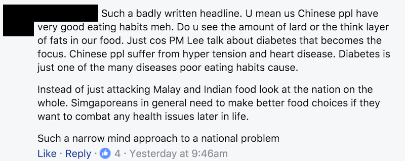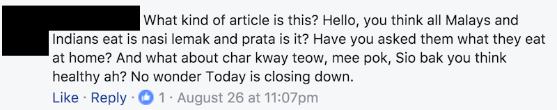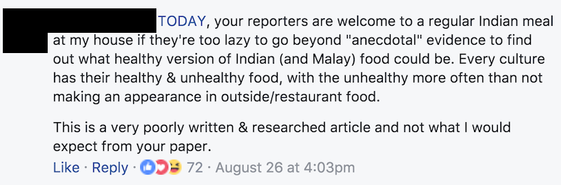 You can read the whole article here, but in case of TL;DR, the two writers (of Chinese descent) argued strongly that Malays and Indians in Singapore have to change their eating habits if they want to win a “war against diabetes”. Traditional methods of cooking their dishes are unhealthy, the journalists asserted, and it would be hard to change the mindsets of either communities.