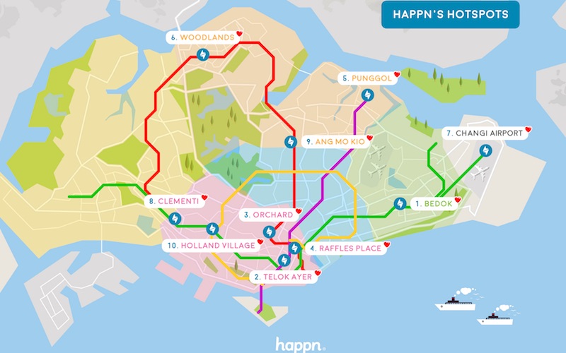 Single and ready to mingle? Looking for love — but in all the wrong places? You won’t have to find it in a hopeless place, thanks to this list of hotspots in Singapore brought to you by dating app, happn. The GPS-based app, which uses real-time geolocation to show users potential matches they’ve crosssed paths with in a 250m radius, offers what it calls ‘a second chance at a first encounter’.