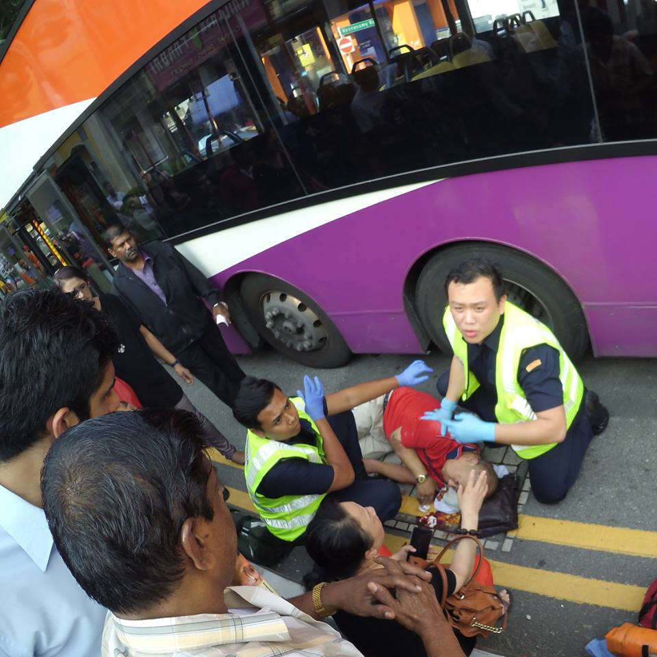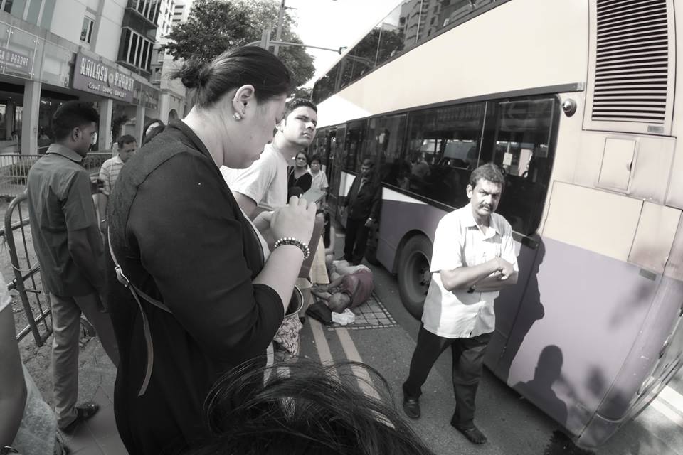 Photographer Choo Meng Foo had been shooting near Sri Veeramakaliamman Temple when he heard a bang and witnessed the aftermath of the collision, which involved the casualty’s wife screaming and banging on the bus door. He recounted the incident in a Facebook post on his page.
