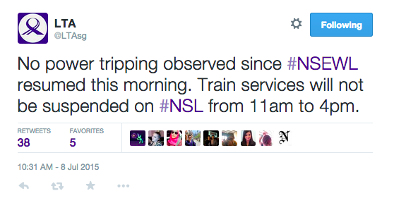 Initially announcing that operations on the red line will be temporarily halted from 11am to 4pm today for further investigations into the fault, LTA mentioned that no power tripping has been observed since both the North-South and East-West lines resumed this morning. Trains might go slower though, so prepare to add more minutes to your estimated travel time.