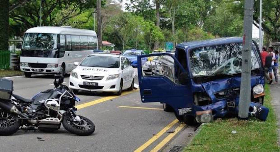The truck then swerved to the side and crashed into lamp post, according to The New Paper.